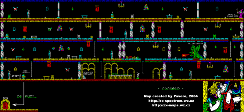 Это игра, которая переносит вас в мир средневековья, где мужчины сражаются за звание рыцаря короля. Вам предстоит пройти тяжелые испытания в безымянном замке, где вы должны выжить и найти выход, избегая судьбы тех, кому это не удалось ранее и превращенных в людоедов под влиянием заклинаний волшебника Нилрема. Используйте физические способности своего героя, включая бег, рукопашный бой, лазание и уклонение, чтобы справиться с преследователями и преодолеть препятствия. Найдите дверь на свободу и взаимодействуйте с волшебником, отдавая ему предметы чтобы он расколдовать дверь. Успех зависит также от посещения Священного фонтана, который дарует вам силу и ловкость.
