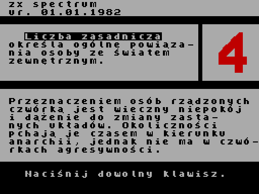 Запустите Numery Szczescia и играйте. Приложение для предсказаний, выпущенное в Польше в 1986 году командой Krajowa Agencja Wydawnicza, которое разработал Cezary Wasniewski.