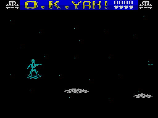 Запустите O.K. Yah и играйте. Эта аркада, опубликованная в Великобритании в 1988 году компанией Pirate Software Ltd, которую написал Mark Rivers.
