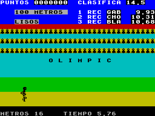 Игра Olimpic запускается прямо на сайте. Эта симулятор спорта, изданный в Испании в 1986 году творческой группой MicroHobby, который написали Gabriel Chova Blasco и David Chova Blasco.