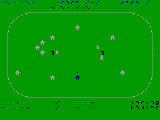 Один день Крикет могут быть воспроизведены с помощью одного или двух игроков. нормальные правила игры используются и оценка карта показан в конце каждого кадром.