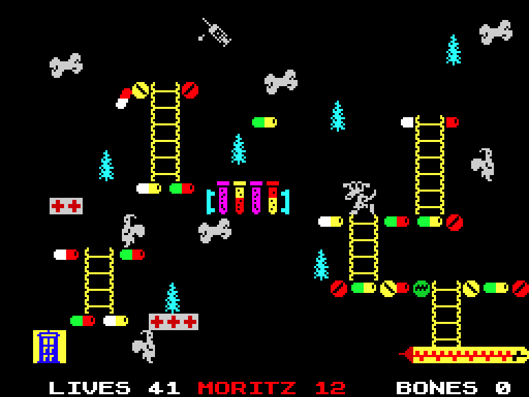 Мориц выглядит как Manic Miner:-) Собирай кости, чтобы добавить ему силы.