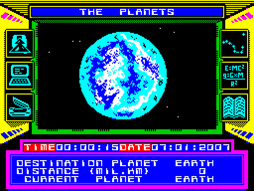 Данные для загрузки в навигационную систему космического корабля. Затем вы можете отправиться на любую из трех планет, хранящихся в компьютере. Обратите внимание, что Земля всегда является резидентной.