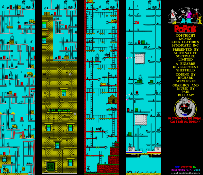 Играйте в Popeye 2 без эмуляторов прямо на сайте. Платформер, который подарили миру Bizarre Developments, Richard Stevenson, Paul A. Bellamy и Mike J. Lister, был опубликован командой Alternative Software Ltd в 1991 году в Великобритании.