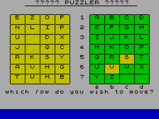 Можете начать играть в Puzzler онлайн. Это логическая игра, которую создал S. Brooks, была выпущена компанией Micromega в 1983 году в Великобритании.