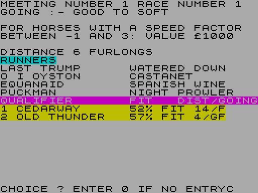 Купить и продать лошадей, как ваши судьбы приливы и отливы. Вернуться Ваша Выбор, а затем смотреть гонки. Если вы не можете нести напряжение, вы можете просто увидеть последнюю фарлонг обнаружить, если вы сделали большой Время или обратно на верх обуви. Очень реалистично моделирование Гонка-лошадь сцена, с использованием спектра, и на ваше мнение, до предела.