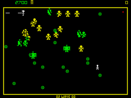A cult arcade shooter ported to the ZX Spectrum by Paul Holmes in 1984. The game brings the original dynamic gameplay of Williams Electronics to the world of an 8-bit computer, while maintaining the tense atmosphere of battles with killer robots.