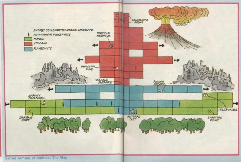 This item is, of course, the eponymous Sacred Armour – an anti-radiation (Antiriad) suit which renders the wearer impervious to just about any form of attack. As Tal your first objective is to find the armour, and then somehow overthrow the alien regime.