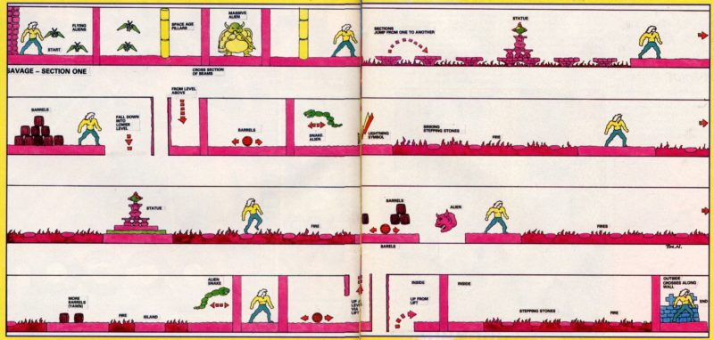El juego SAVAGE está en tres partes; las partes dos y tres sólo dan una vida, a menos que hayas completado el nivel anterior. Cuando hayas completado los niveles uno y dos tendrás una palabra clave para teclear al principio del siguiente nivel, que te dará entonces tres vidas completas.