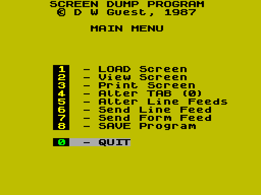 Игра Screen Dump Program запускается прямо на сайте. Эта утилита для визуализации, изданная в Великобритании в 1987 году командой D.W. Guest, которую написал D.W. Guest.