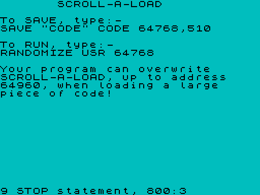 Запустите Scroll-a-Load и играйте. Это утилита для визуализации, которую создал Nigel Grange, была издана компанией Your Sinclair в 1992 году в Великобритании.