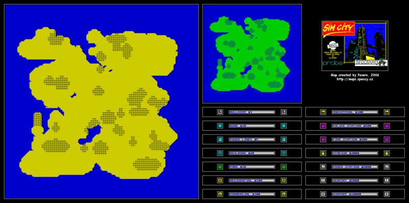 Si te gusta uno de los terrenos generados aleatoriamente o si has concebido un buen terreno y quieres intentar diferentes estrategias de desarrollo, puedes salvar el terreno sin ningún edificio. Después, cuando construyas tu ciudad sálvala con otro nombre porque sino perderás el terreno original.