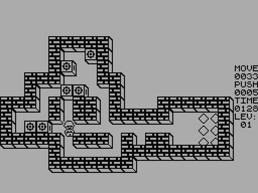 Культовая головоломка, в которой игрок управляет кладовщиком, передвигающим ящики по лабиринту. Цель – расставить все ящики на отмеченные места, избегая тупиковых ситуаций. Польская версия для ZX Spectrum, созданная WE [Poland] в 1991 году, сохраняет классический геймплей, но адаптирована под ограничения 8-битного компьютера.