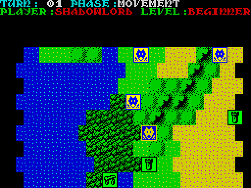 блоки и крепости на сетке, основанной шестиугольника. Курсор можно перемещать по экран с помощью элементов управления курсором (см карту), и помещается на любом шестнадцатеричном. Картографические свитки, когда курсор приближается к краю.