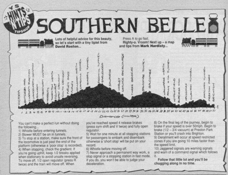 Игра представляет собой реалистичный симулятор паровоза класса «Король Артур», который ведет пассажирский поезд из Лондона в Брайтон в начале 1930-х годов. Вам предстоит взять на себя роли пожарного и машиниста, чтобы провести паровоз и его состав по маршруту. Игра содержит много уровней, требующих от вас внимательного изучения инструкции, настройки управления и прохождения тренировочного заезда. Вы должны совершенствовать свои навыки, чтобы в конце концов довести Southern Belle в Брайтон в соответствии с расписанием, используя имеющиеся уголь и воду с оптимальной эффективностью. После одной минуты пребывания на экране меню компьютер автоматически выберет скоростной заезд, показывающий весь маршрут.