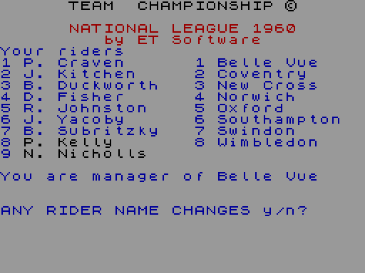 Играйте в Speedway – Team Championship – 1960 онлайн. Это спортивный симулятор, который создал Eddie Thewlis, был издан командой ET Computer Software в 1992 году в Великобритании.