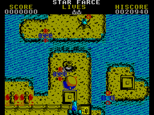 You are given three ships with which to complete this mission. However, certain land installations, when shot several times, open up with the possibility of revealing an extra one. Also on the land there are several fighter and refuelling craft which, if destroyed, give a bonus at the end of the stage.