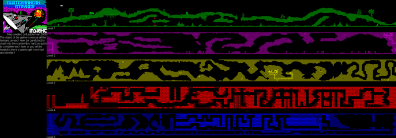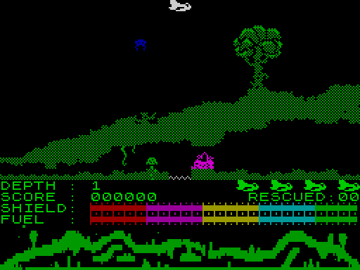 На каждом из нижних уровней enemt склад горючего. Вы можете украсть топливо и Энергия от них путем простого летит до сопла. Когда вы спасли все восемь мужчин из каждого уровня энергии ворота исчезнет позволяя спуститься к следующей цели. Если вы начнете слишком долго на любом уровне Иностранец команда блюдце будет привязываться к вашей позиции и попытаться таранить вас.