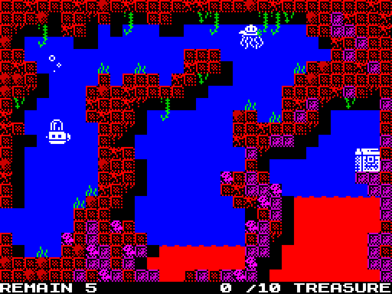 You control the mini-submarine “Baby Gulp”, diving into the depths of the ocean. Your goal is to collect 10 treasure chests and escape through the bubble vortex.