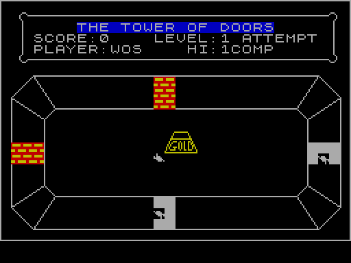 Захватить золото из Башни дверей ?? но дон ?? т попасть в ловушку. Стратегия игра Филипа Лафлин Ротерем, Йоркшир, он работает на 48К Spectrum или Спектр Плюс. Вы должны двигаться по комнатам башни подбирая золото, но каждый раз, Вы используете дверь, она ?? ы замурованы позади вас. Сколько золота можно собирать