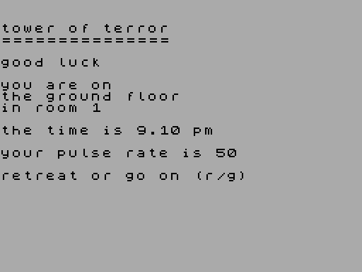 Играйте в Tower of Terror онлайн. Эта игра-симулятор, изданная в Великобритании в 1984 году творческой группой Usborne Publishing Ltd, которую написали Jenny Tyler и Chris Oxlade.