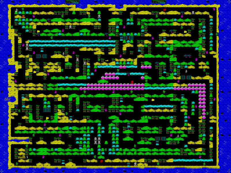 The quest for the treasure starts at the stockade which the adventurers have built on the island. Then whilst tackling the evil murderous pirates Jim must find Ben Gunn’s cave. The chase and search takes place upon an attractive ‘Treasure Map’ which is displayed on screen in sections. There are a total of sixty-four sections to play through.