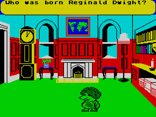 Вопросы загружаются во время игры, что, возможно, небольшие перерывы. Держите ленту в кассете с ним кнопку ИГРАТЬ вниз за всю игру. Яркие полосы в нижней части экрана показывает, что зарядка вопросы находятся на обеих сторонах ленты.