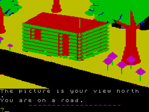 Вы начинаете игру, стоя на дороге, работает с востока на запад. Рядом находится деревянный домик, который вы только что арендовал у трактирщика из «The Sword Inn”. Оно выглядит это дается: