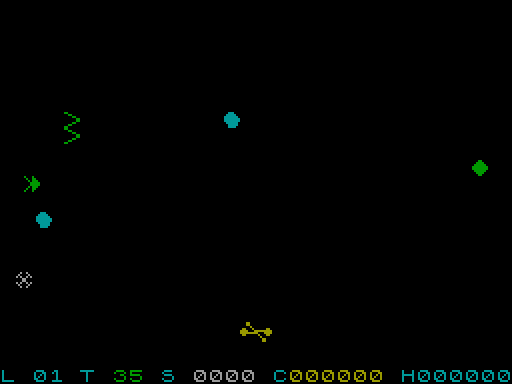 Запустите Violent Universe и играйте. Эта игра-стрелялка, опубликованная в Великобритании в 1983 году творческой группой Quest Microsoftware, которую написал Bob Hamilton.