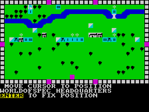 The game is controlled using the ZX Spectrum keyboard. The interface consists of a map on which the player moves the cursor.