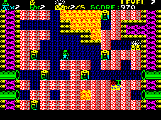 Игра состоит из бурения 11 скважин внутри, чтобы достичь выходная дверь. Для этого у вас есть нападающий молоток разрядились батареи в Иране Степень uses.En вашего спуска, чтобы найти дополнительные батареи не перезаряжать молоток, потому что если вы бежите из батарей получили не более выбора, кроме как использовать ключ к самоубийству и потерять жизнь будет для нее в верхней части скважины. Вы также можете найти множество ТНТ, которые сделают большую дыру, если вы можете нажмите детонатор сверху. Есть золотые слитки, разбросанные вокруг каждой скважины и если вам удастся собрать 8 canjearas для дополнительной жизни каждый раз, когда вы получаете его. Есть несколько опасностей, которые могут возникнуть, из водопроводов в пьяный мол, не колеблясь, чтобы преследовать нарушающие куски породы чтобы найти свой путь, также действительно горячие сумки лавы вы tocas.Fijate убит, если либо родинки, потому что есть блоки, которые не делают могут быть уничтожены, а другие же, поэтому постарайтесь, чтобы заблокировать их или оставить их назад в то время как вы спускаетесь круто к выходу, если вы приближаетесь много мол потеряете жизнь.