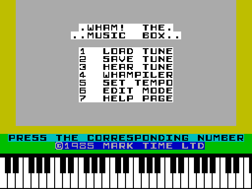 Игра Wham! The Music Box запускается прямо на сайте. Утилита для написания музыки, изданная в Великобритании в 1985 году командой Melbourne House, которую разработали Mark Time Ltd и Mark Alexander.