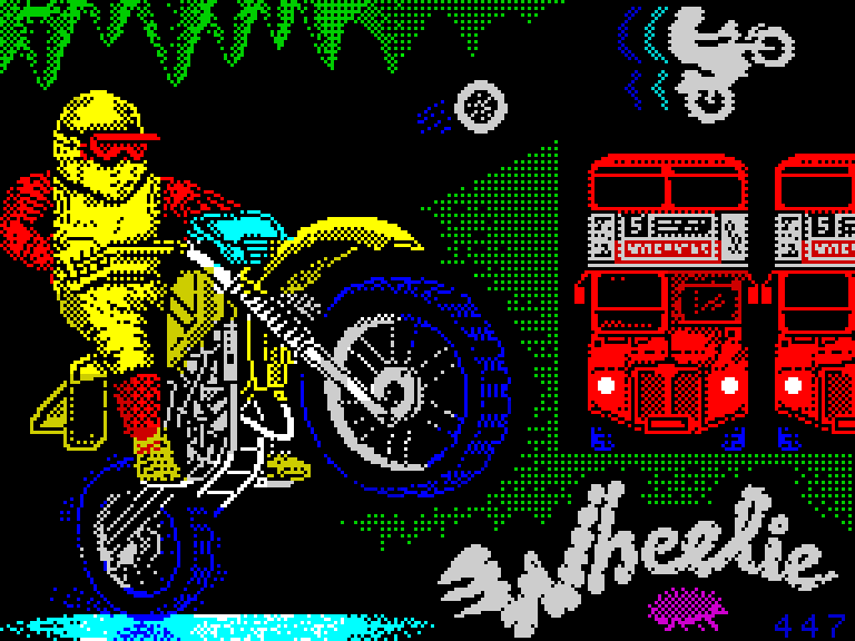 WHEELIE отличается сверхбыстрым 100% машинным кодом, возможностью управления джойстиком (поддерживается большинство джойстиков), демонстрационным режимом и лучшей графикой, которую вы когда-либо видели на Spectrum!