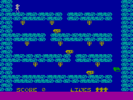 Запустите Wonkey Chateau и играйте. Эта аркада, опубликованная в Великобритании в 1985 году компанией Wildest Dreams, которую написали J.D. Woodcock и S. Wilson.